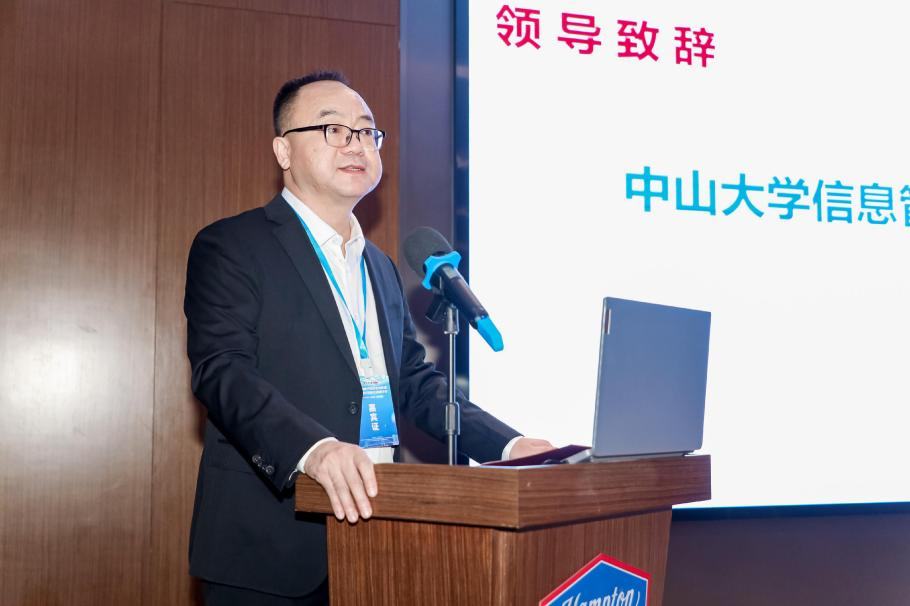 中山大学信息管理学院院长张洋教授代表会议主办方信息管理学院致辞。他介绍了近年来学院的发展和建设情况,并指出参与深中通道电子档案管理实践创新项目是过去一年重点实验室给国家、给社会交出的一份亮眼的成绩单。他表示,本次会议的交流与碰撞定能进一步凝聚学界与业界在工程建设项目电子文件归档和电子档案管理中的共识,探索并构建出具有示范意义的“深中样本”与“湾区方案”,为相关领域的档案工作与行业发展贡献出新的智慧与力量。他也相信,此次会议将成为“政产学研用”深度融合、协同创新,促进大湾区档案事业高质量发展的又一个标杆。