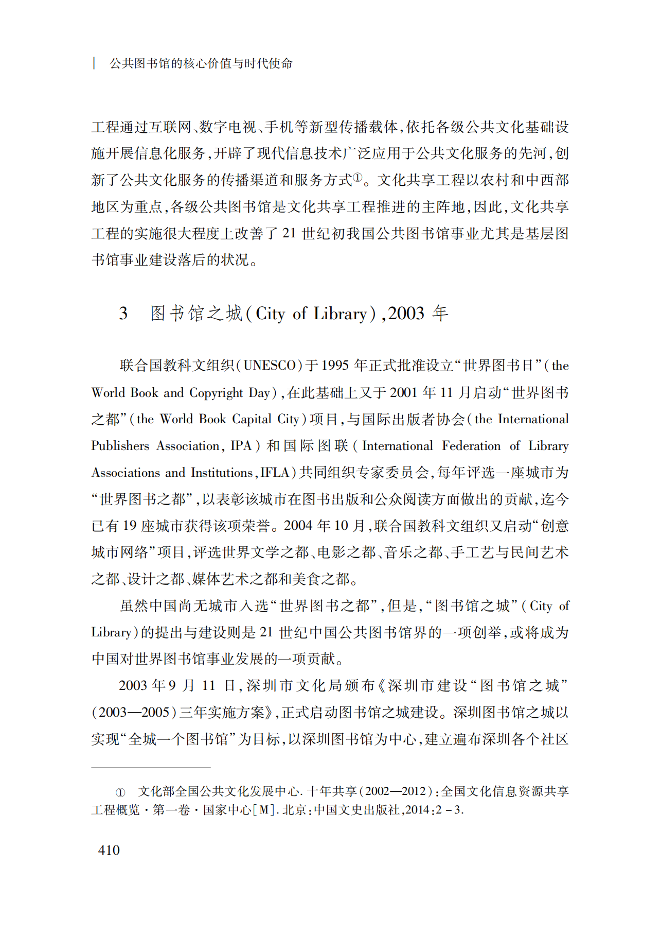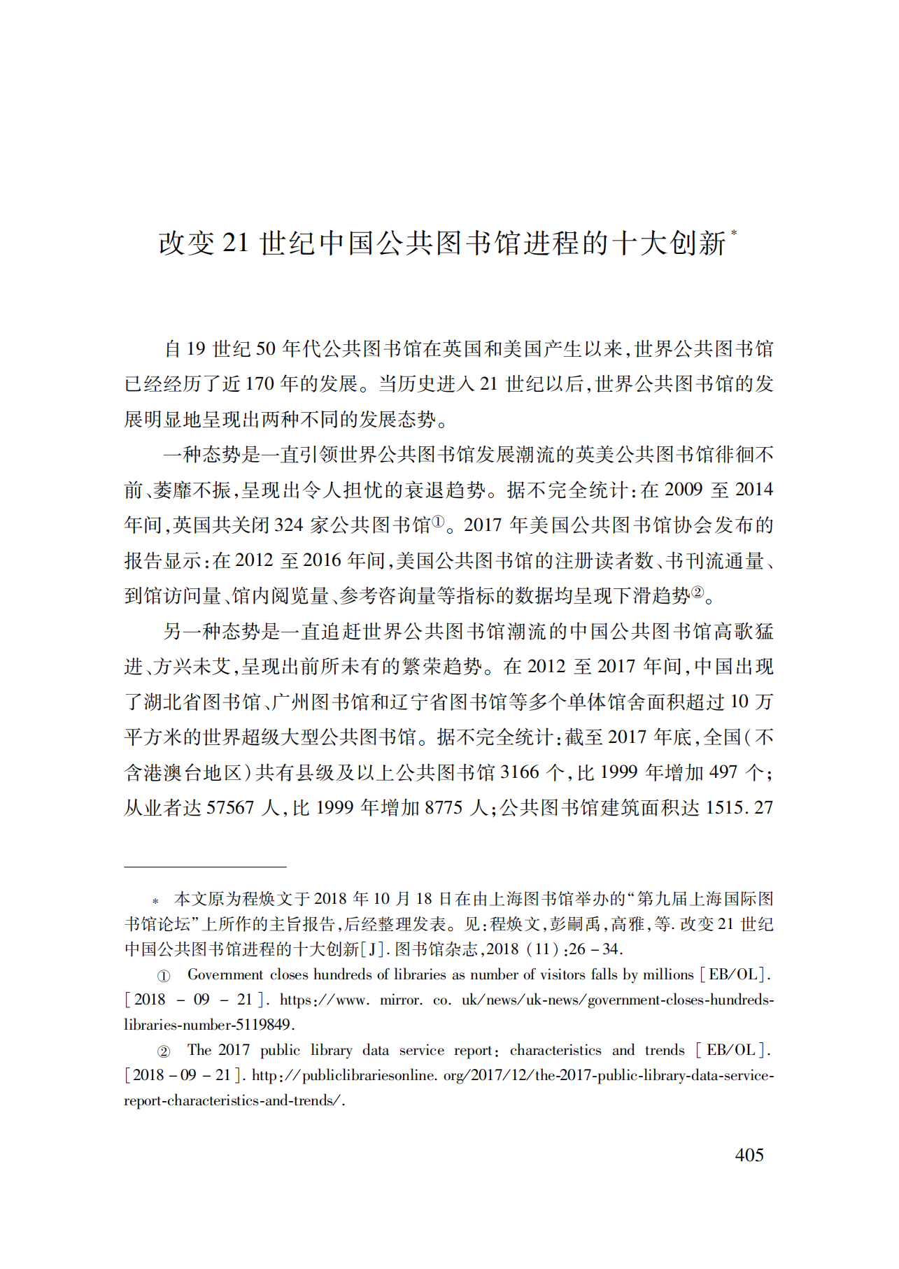 书中的内容不仅比较系统地体现了程焕文教授的公共图书馆思想,而且比较全面地反映了我国公共图书馆的理念发展和实践创新,从中可见新世纪公共图书馆发展的“中国道路”与“中国模式”。通过本书,不仅可一窥新世纪中国公共图书馆发展思想史,亦可将其作为指导未来中国公共图书馆发展的指南。