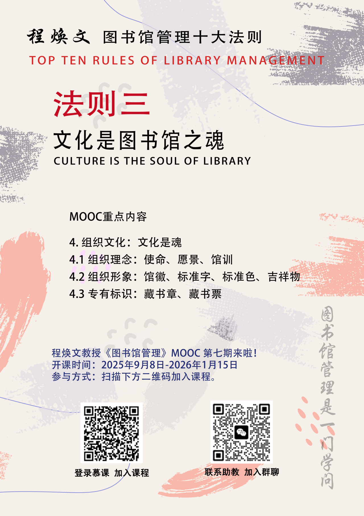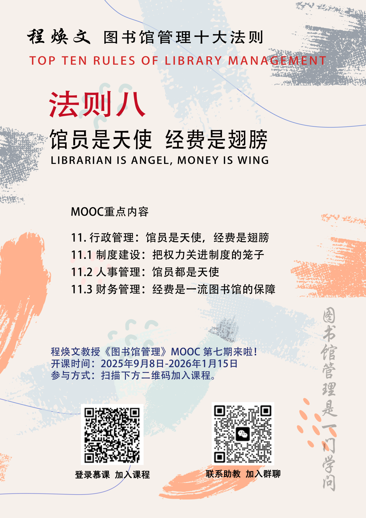 程焕文《图书馆管理》MOOC新学期 开讲啦!