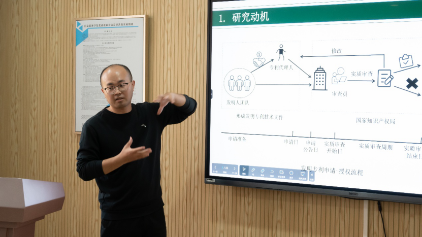 报告一由中山大学信息管理学院博士后杨秀财老师主讲,题为《专利代理人对专利审查周期的影响:提升效率还是延缓创新进程?》。针对我国专利“量大质低”的质疑及优化审查周期的需求,杨秀财老师通过实证分析探究了专利代理制度的影响机制。研究结果表明,委托专利代理人实际上显著延长了实质审查周期,这种延时效应很大程度上源于代理人通过与审查员的高频深度互动以争取授权的策略。报告指出,这揭示了代理制度运行的复杂性,为规范代理行业发展提供了政策启示。