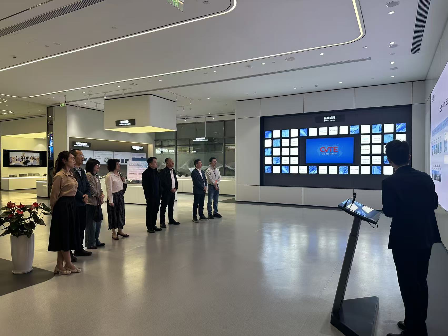 交流会开始前,学院党委理论学习中心组一行参观了视源股份的企业展厅,在专员介绍下了解了企业发展历程和业务布局。中心组一行来到视源股份智能工厂参观自动化生产车间,了解制造业数智化发展和应用。