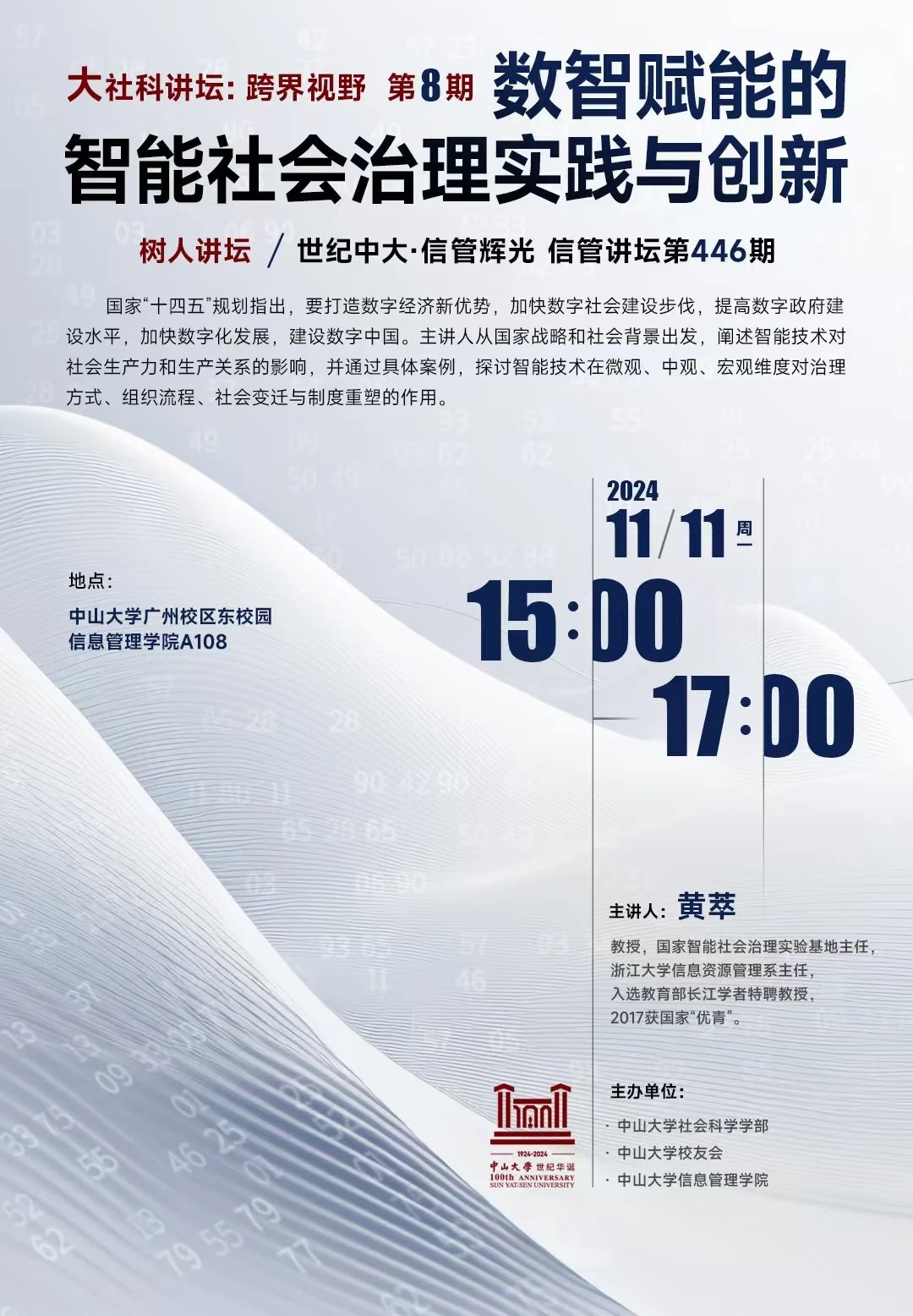 学术预告 | 大社科讲坛·树人讲坛:数智赋能的智能社会治理实践与创新